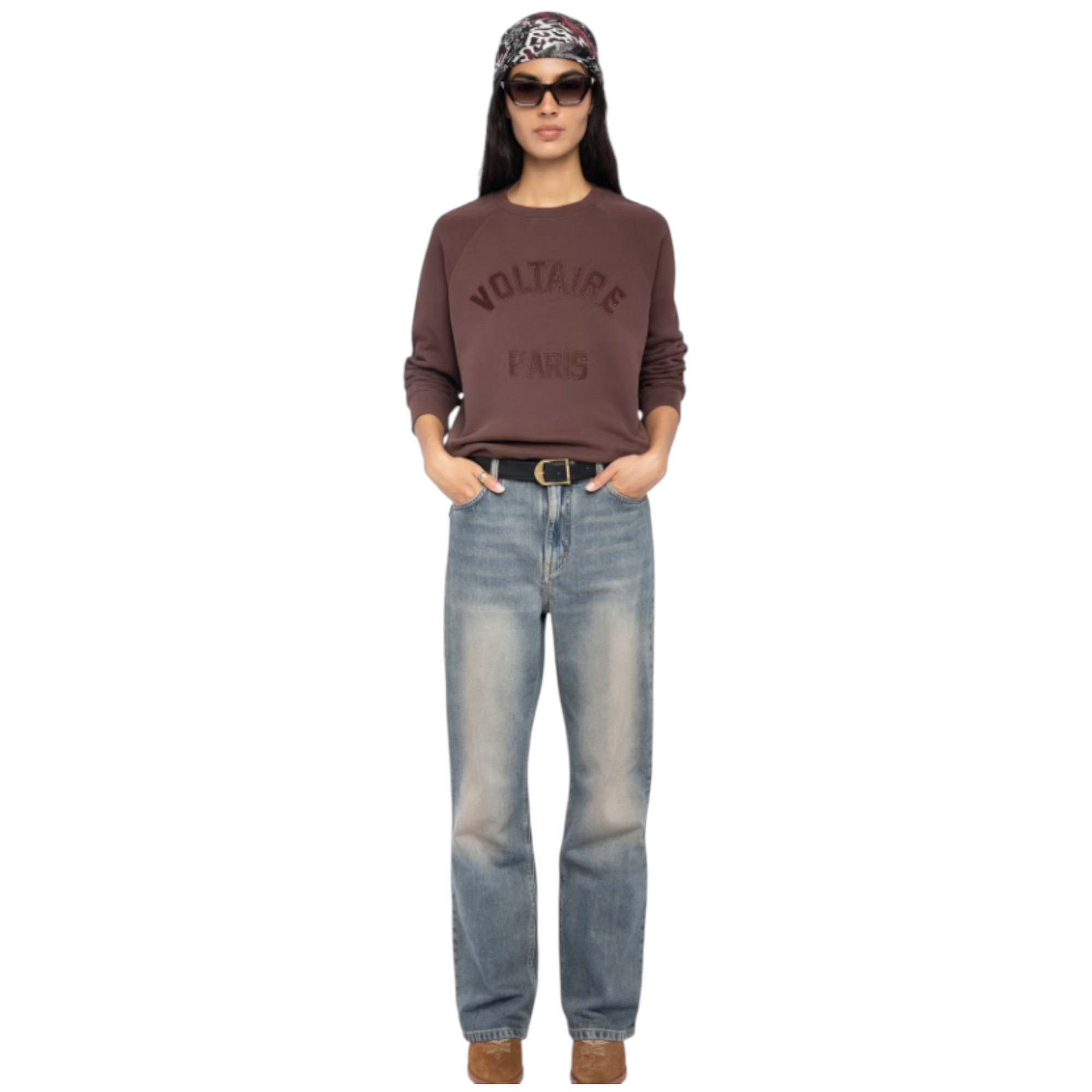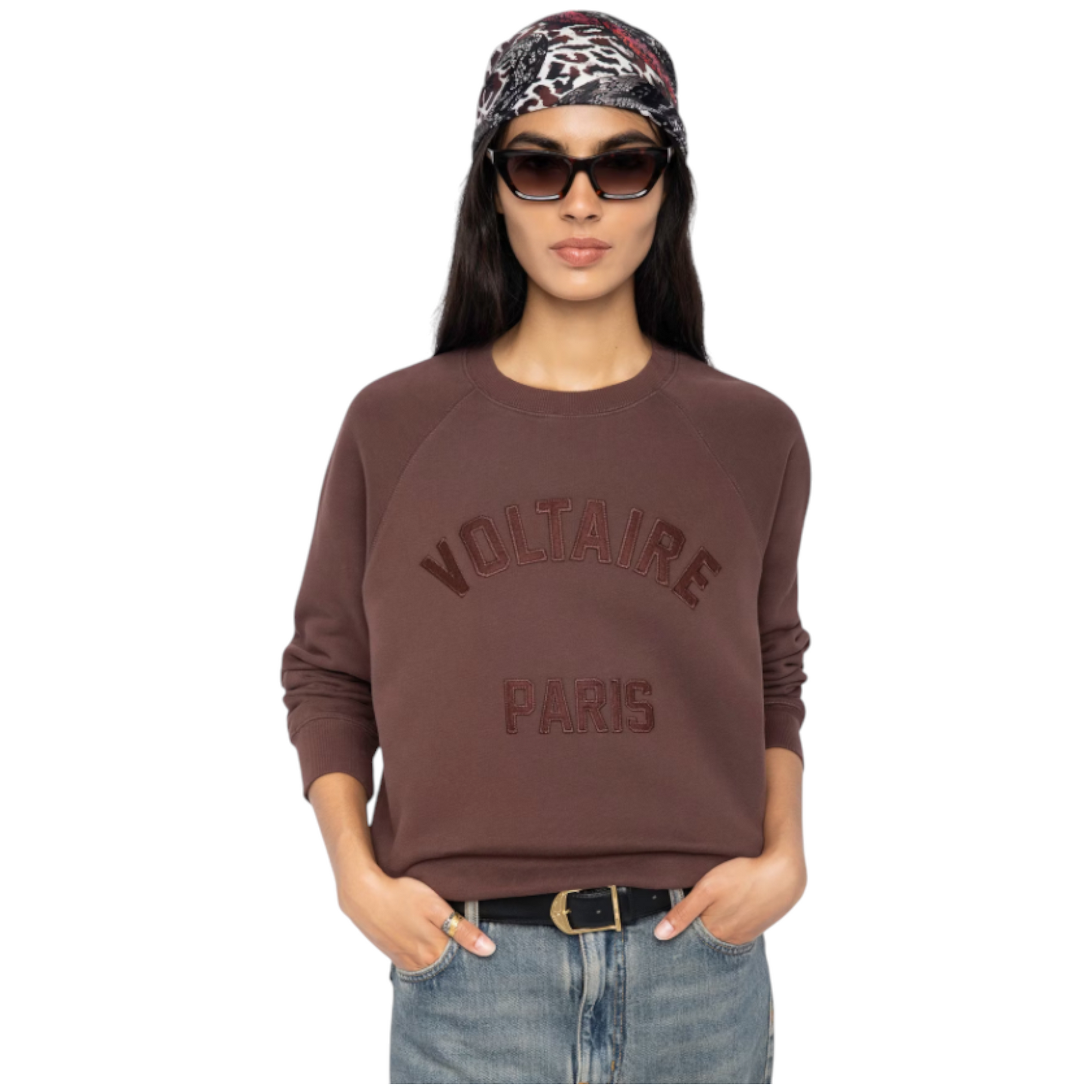 Sweatshirt i bomuld med rund hals og lange ærmer. Broderet “Voltaire Paris” patch på brystet.