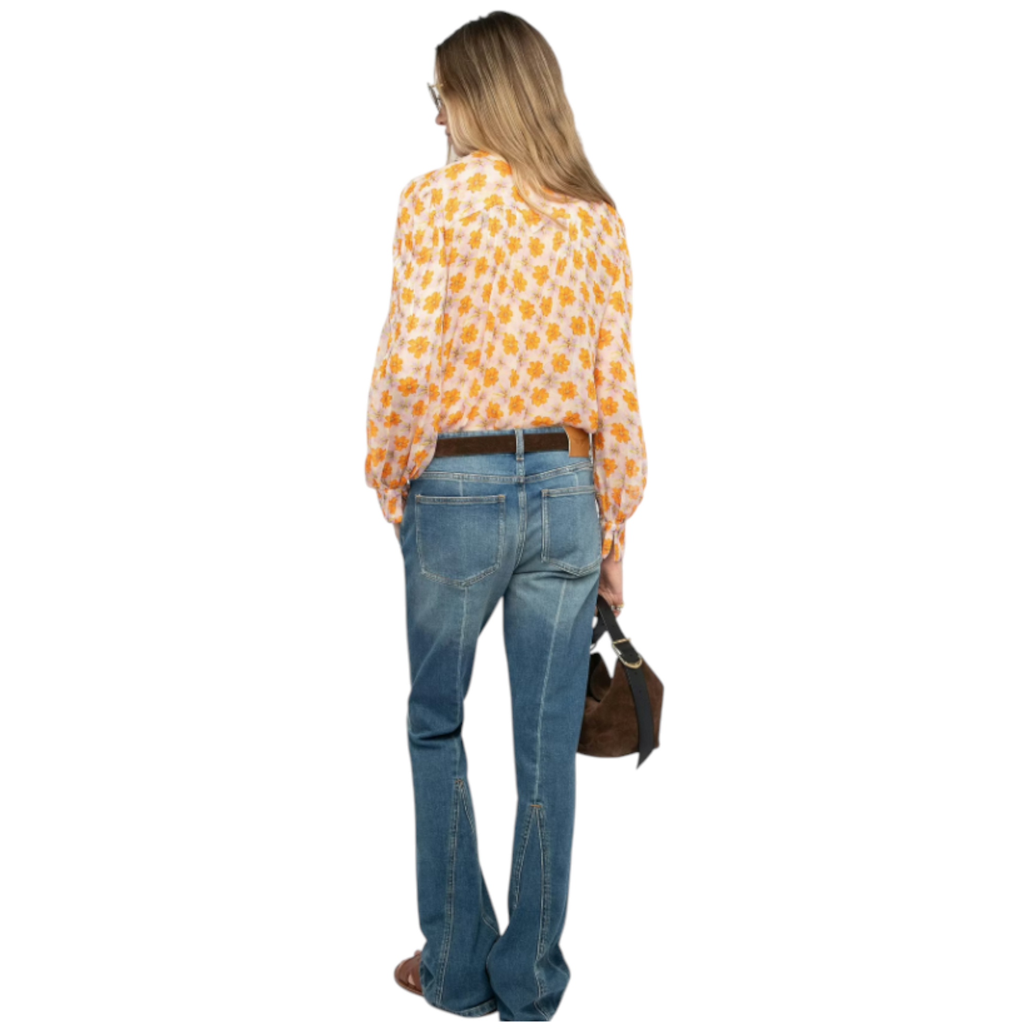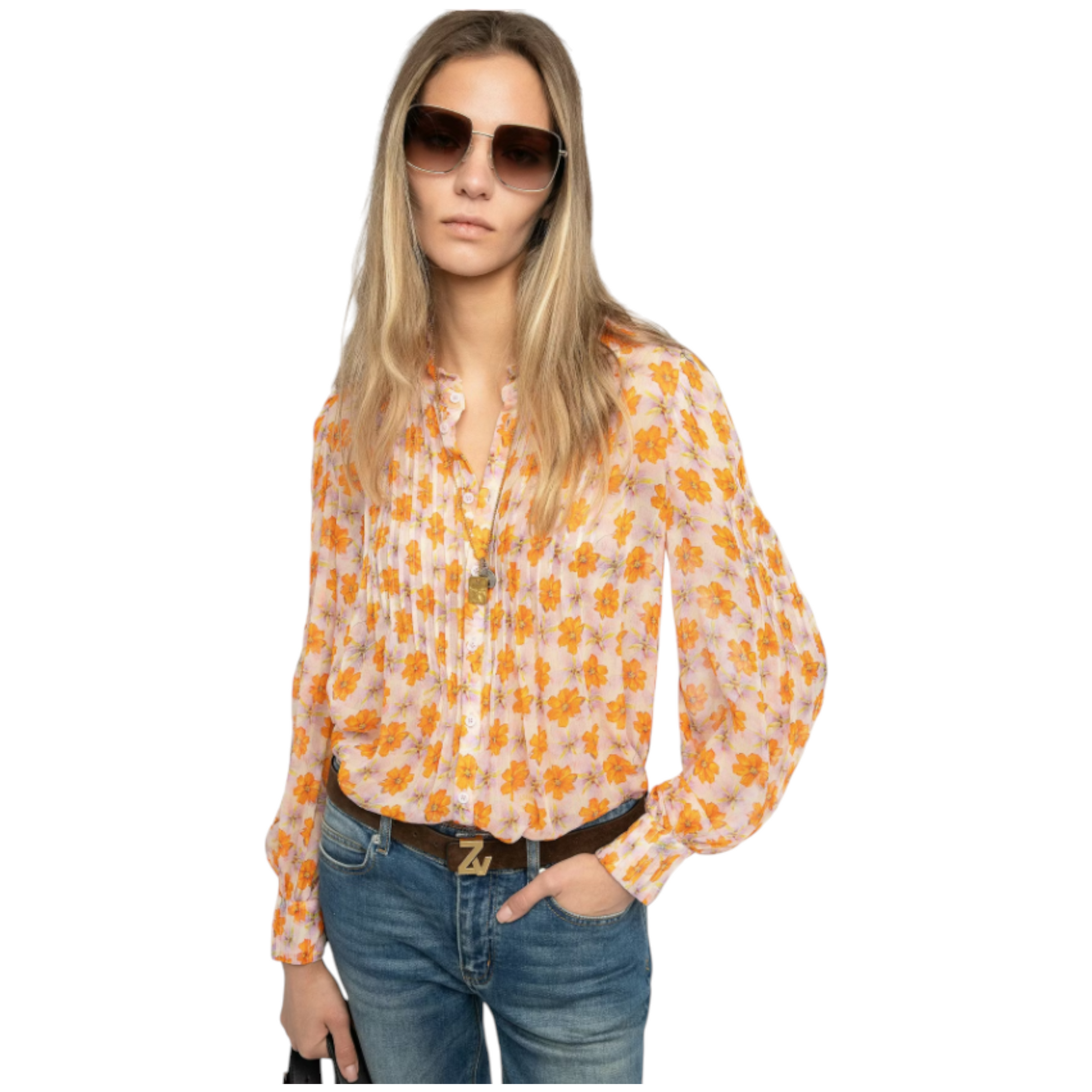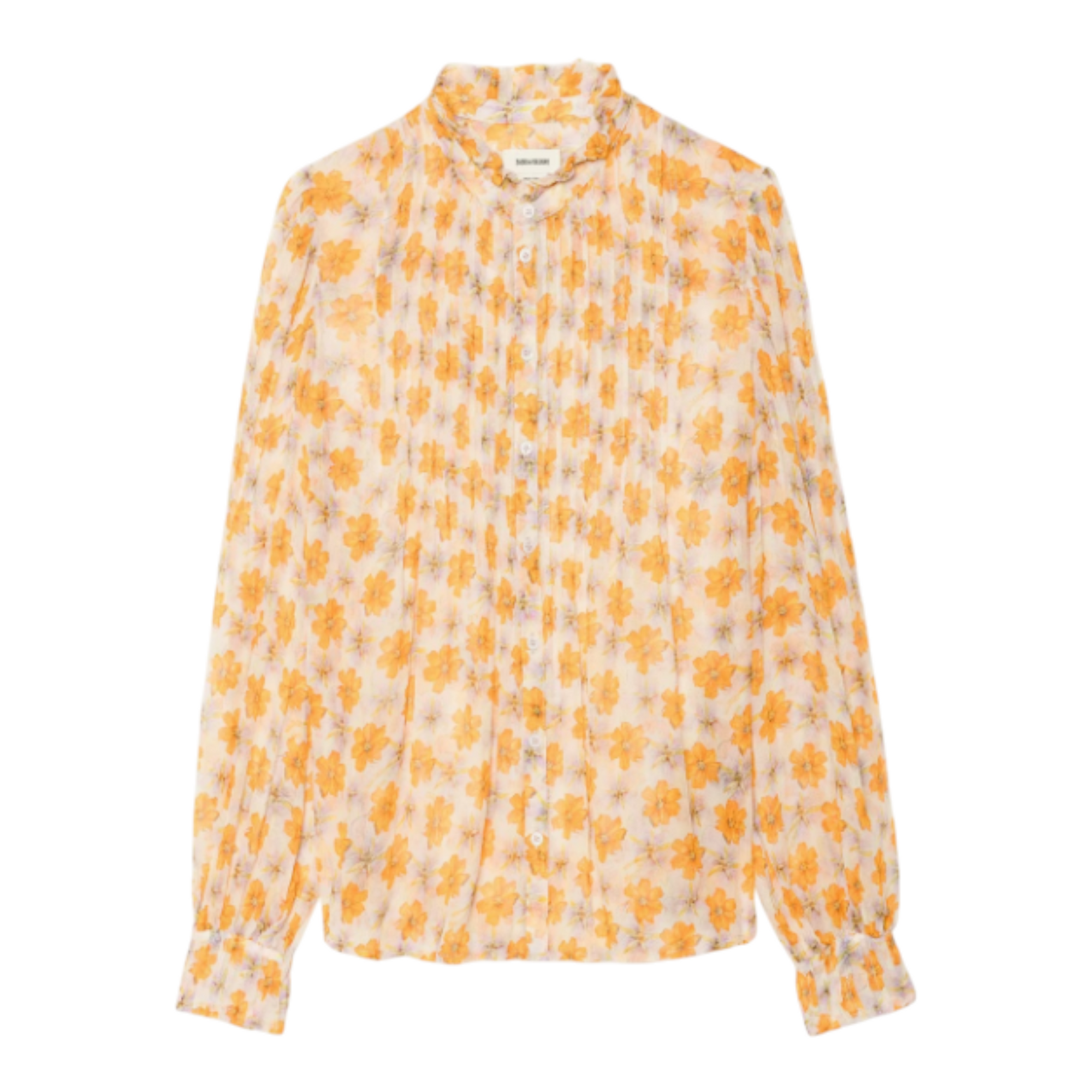 Tunic Timz er en let og elegant tunika i printet chiffon/musselin med knaplukning og lange ærmer. Modellen har et luftigt udtryk og en afslappet silhuet i en blød cremefarve. Normal i størrelsen.