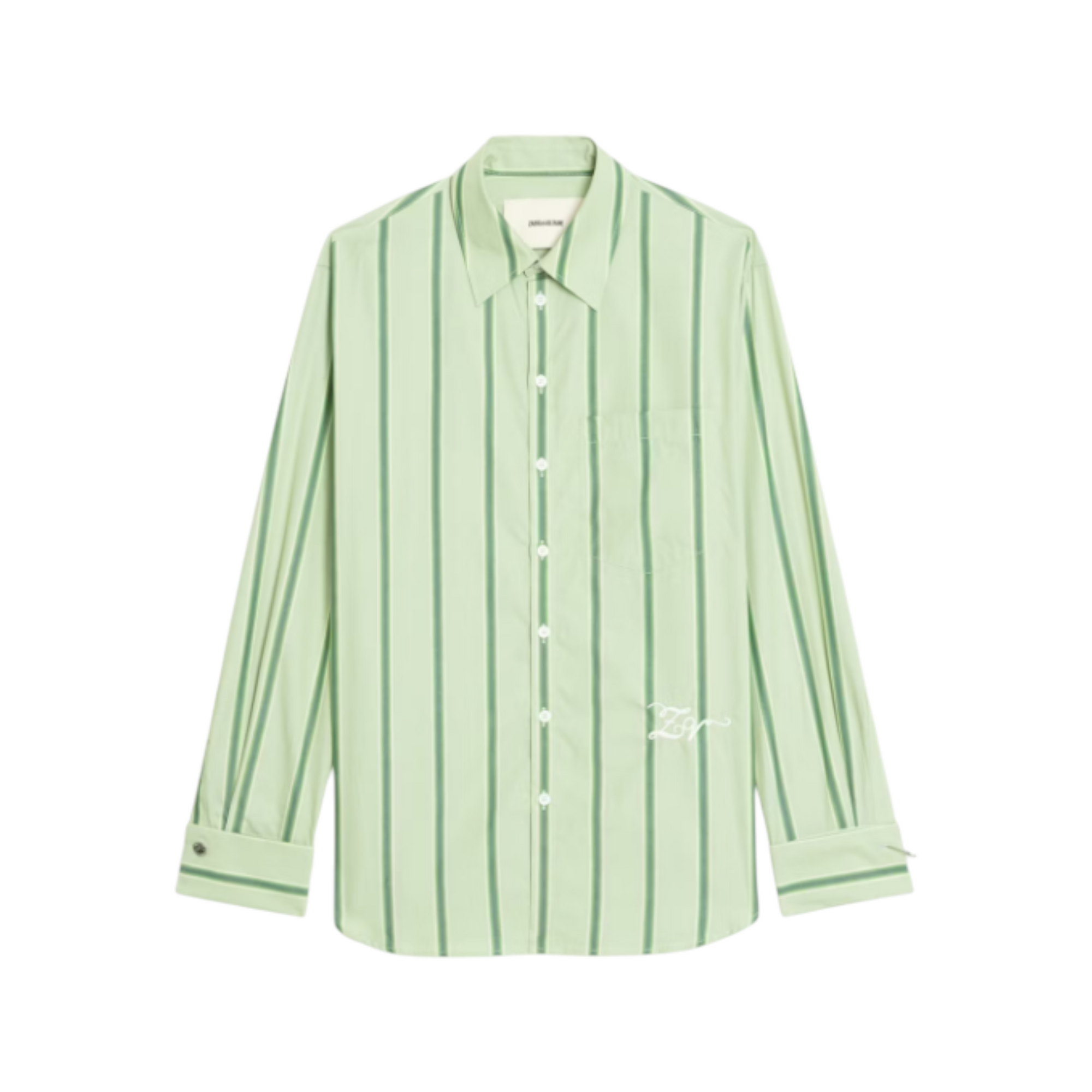 Oversize skjorte i 100% bomuld med klassisk krave og enkel knaplukning. Den har brystlomme, broderi ved manchetterne og lange ærmer. En let og tidløs style i stribet poplin.