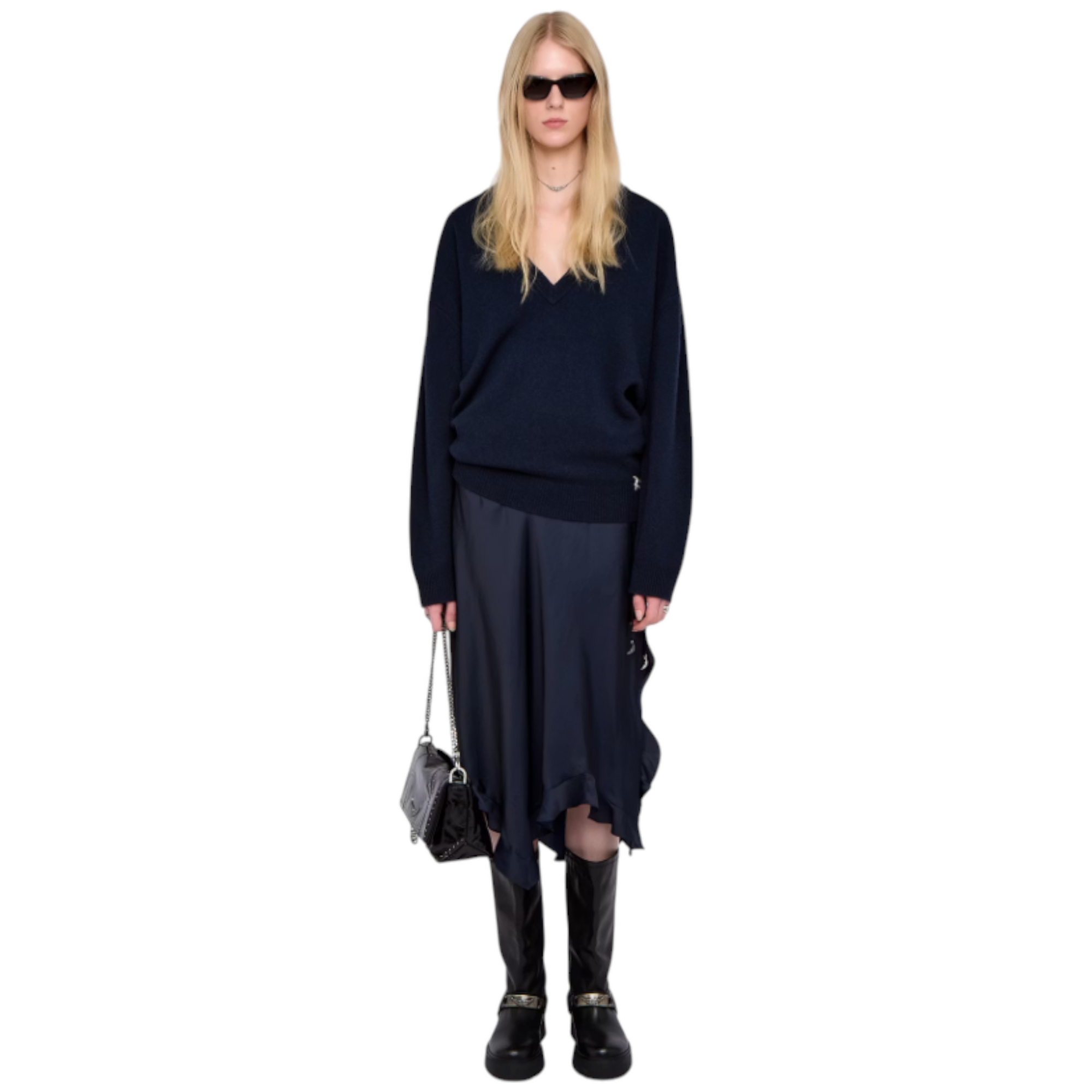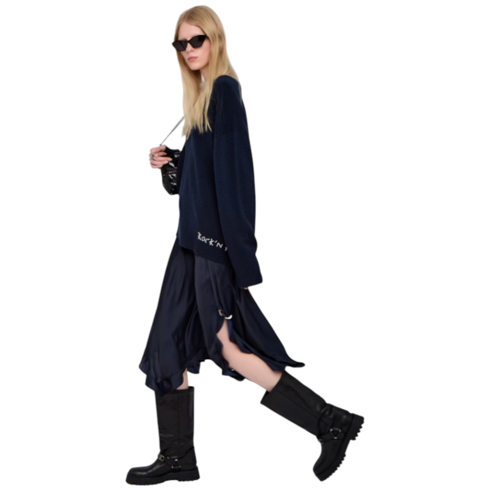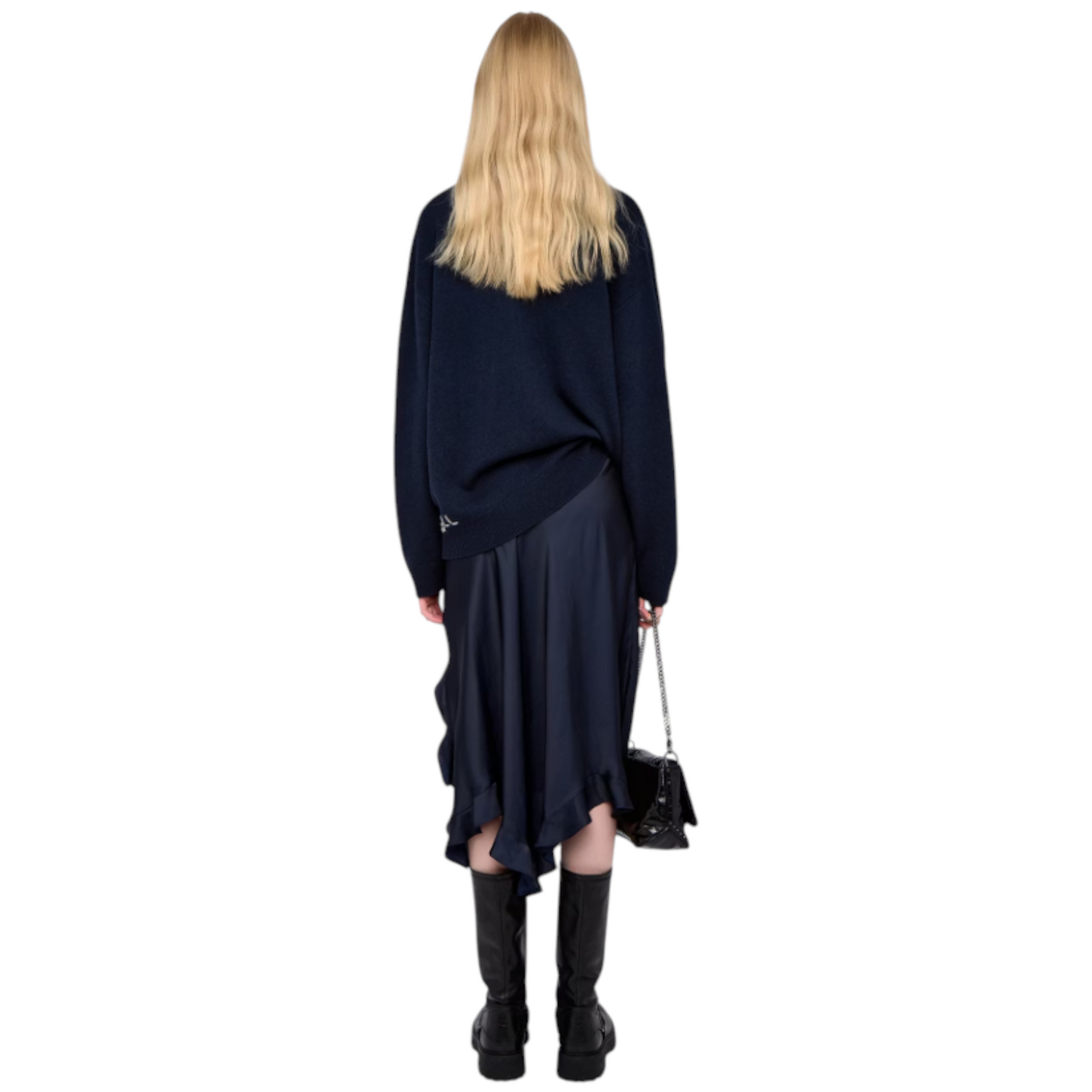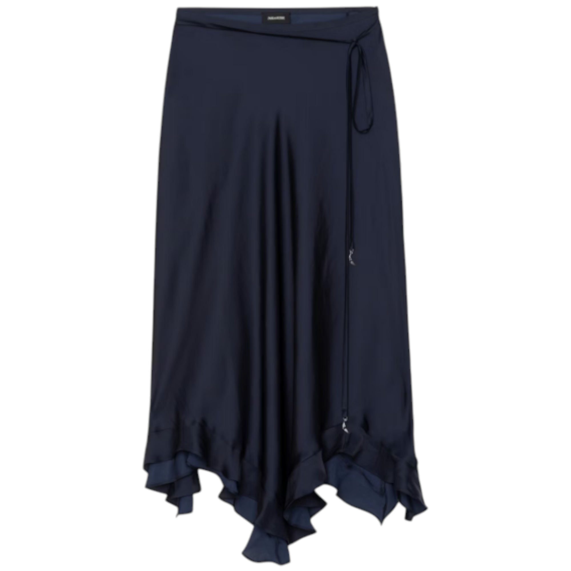 Elegant lang nederdel i luksuriøs japansk satin med asymmetrisk snit. I livet har den en justerbar snøre pyntet med fine wing charms. Den flydende pasform giver et smukt og let fald.